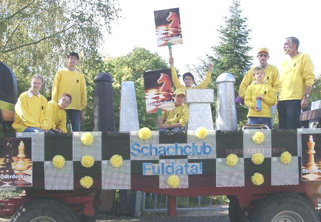Auch der Schachclub hatte sich den Gratulanten angeschlossen und präsentierte sich mit diesem Wagen