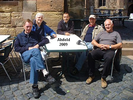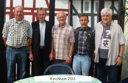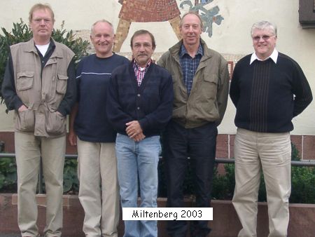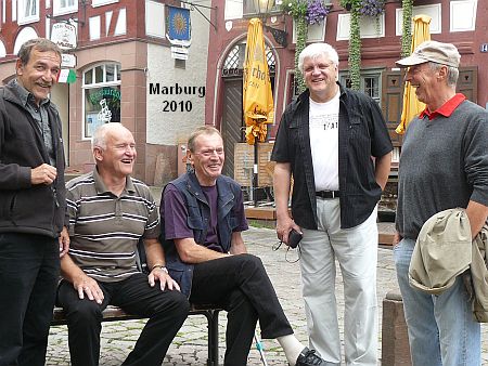 Dieses Mal reisten die fünf Kameraden (von links) Hansheinrich Hamel (Kirchhain), Walter Frank (Immenhausen), Helmut Zinkan (Kirchhain), Helmut Ferstl (Bürgstadt) und Rolf Engelhardt (Kassel) mit ihren Fahrrädern an und erradelten die Gegend zwischen Reicholzheim und Bad Mergentheim mit Hilfe der radlerfreundlichen Tauberbahn. Natürlich wurde auch der Ottenberg in Lauda erklommen und in einem Lokal in der ehemaligen Tauberfranken-Kaserne - dem jetzigen i_Park - schwelgte man bei gutem Essen in alten Erinnerungen. Genau da, wo früher Kantinenwirt Ötzel seinen Ausschank hatte.