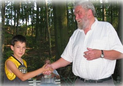 Die Endrunde am 13.09.2007 Endlich konnten wir die Endrunde der Freischachmeisterschaft ausspielen. Qualifiziert hatten sich nur 3 Teilnehmer, nämlich die Nachwuchsspieler (!?) Benjamin Aslan und Vincenzo Kiewning sowie ihr ehemaliger Übungsleiter Heinz-Dieter Schmidt. Benjamin und Vincenzo waren seit 1999 in der Jugendgruppe. Nachdem sie ihr Wissen erweitert hatten, nutzen sie das Angebot des Schachclubs, sich von FIDE-Meister Uwe Kersten trainieren zu lassen. Und heute besuchen sie die Schachakademie in Kassel. Ihr Trainingsfleiß hat sich ausgezahlt. Benjamin Aslan gewann beide Partien, und Vincenzo siegte gegen Heinz-Dieter Schmidt, für den nur der dritte Platz blieb. Was kann es aber Schöneres für einen Übungsleiter geben als den Nachweis, dass die Schüler gut gelernt haben und ihren Übungsleiter besiegen! Dank der zuschauenden Mitglieder Otto Weymann, Hans-Walter Reuber (mit Begleitung) und Rolf Engelhardt verlief die diesjährige Endrunde doch nicht ganz in der befürchteten Anonymität. |