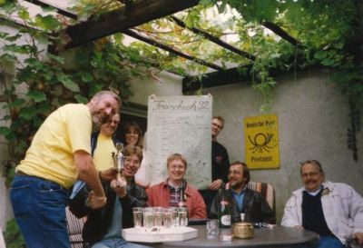 Hinter HDS sehen wir Willi Alefs und ganz hinten Hannelore Schmidt und Helge Wolf. Neben Carsten sitzen Peter Mahler, Rolf Engelhardt und Karl-Ernst Schönwetter.