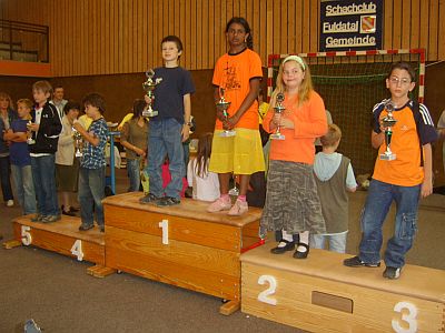 Die größte Gruppe bildete die Altersklasse U 14 mit 45 (verdoppelt gegenüber 2006), dicht gefolgt von der U 12 mit 40 und der U 10 mit 36 Teilnehmern. Und dann folgte schon die Altersklasse U 8 mit 16. Auch die Teilnehmer vom Schachclub Fuldatal konnten zufrieden sein: