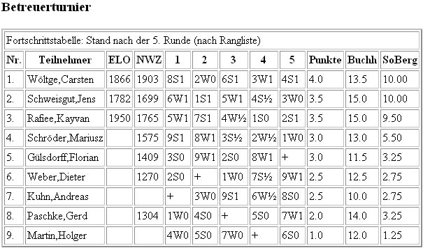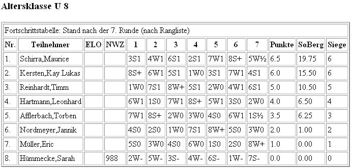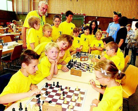 Aus der HNA vom 17.06.2008 Erst klick, dann klack - und ab ins Matt In der Sporthalle der Grundschule Simmershausen fanden die 4. Jugend-Schach-Open des SC Fuldatal statt Fuldatal. Klick, klack, klick - die Atmosphäre in der Sporthalle der Grundschule Simmershausen hat etwas hypnotisierendes. Klick - Spieler eins ist am Zug, klack - nun ist Spieler zwei dran, klick. Wir sind beim Schach. Genauer: Bei den 4. Fuldataler Jugend-Schach-Open 2008. Und mit uns 131 begeisterte Spielerinnen und Spieler. Einer davon ist Timm. Für den 7-Jährigen ist es das erste Turnier. Erst seit vier Wochen geht er regelmäßig zu den Übungsstunden. Zusammen mit seinem Vereinskameraden Mika (8) sitzt er konzentriert am Brett. "Springer am Rand ist eine Schand'", erklärt er fachmännisch - und verliert nach sieben Minuten doch. |