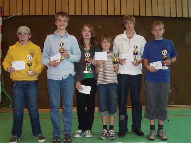 Timm hat Glück. Das war nur ein Trainingsspiel - um dem unwissenden Reporter die Regeln zu erklären. "Schach ist nicht schwer", sagt Timm. So leicht sogar, dass er mittlerweile seine Mutter regelmäßig besiege, freut sich der Sprössling. Und auch im Turnier läuft es gut. Zwei Spiele hat Timm gewonnen, eins verloren. Gespielt wird im Schweizer System, nach dem jeweils die besseren und die schwächeren Spieler aufeinander treffen. "Ich bin natürlich auch aufgeregt", verrät Timm, der die Turniersituation ja noch nicht so gut kennt. Um 13.15 Uhr wird zur nächsten Spielrunde aufgerufen. Der vierten von sieben an diesem Tag. Timm flitzt zum Aushang mit den angesetzten Partien und sucht sich seinen Platz. Ihm Gegenüber setzt sich ein Spieler aus Bad Berleburg auf den Holzstuhl. Torben heißt er. Beide schütteln sich die Hände. "Fairness gehört immer dazu", erklärt Heinz-Dieter Schmidt, Timms Trainer und Organisator des Turniers. Nun beginnt die Partie. Nervös baumeln Timms Beine unter dem Tisch. Sein Kontrahent Torben kippelt dafür auf dem Stuhl hin und her. Die Denkerpose wird eingenommen, einmal, zweimal. Und dann kommt der Schlag. Auf die Uhr, nicht auf den Gegner. Zwanzig Minuten hat jeder Spieler Bedenkzeit in jeder Partie. Für Timm scheint es gut zu laufen. Immer mehr Figuren seines Gegners räumt er vom Brett. Dabei kommentiert er dreist auch dessen Züge. "Eigentlich macht man das nicht, aber das müssen die jungen Spieler noch lernen", sagt Schmidt. Zehn Minuten dauert die Partie, dann hat Timm Torben matt gesetzt - sein dritter Sieg ist perfekt. Am Ende des Tages wird Timm in seiner Altersklasse U 08 Dritter. Einen Pokal bekommt er dafür, eine Urkunde und einen Sachpreis. "Ich freue mich total", sagt Timm. Jetzt könne er in der Schule auch endlich von seinen Erfolgen erzählen. "Ich bin richtig stolz."Klick, klack, klick - gegen 17 Uhr wird das letzte Mal auf eine Uhr gehauen. 16.06.2008 (Von Aydogan Makasci) (Veröffentlichung von Bild und Text durch HNA genehmigt) |