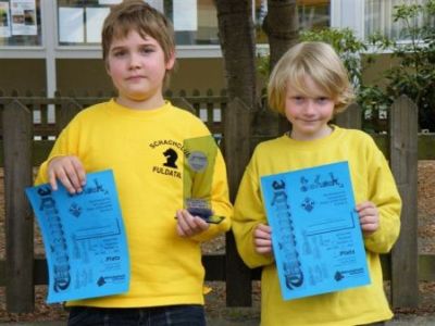 12.04.2008, 3. Runde Schulschach Rallye in Fritzlar Mit insgesamt 44 Teilnehmern in 4 Wertungsklassen war das Turnier etwas schwächer als üblich besucht. Fuldatal war in der Wertungsklasse G (=Grundschüler) mit 6 Teilnehmern dabei, die sich hervorragend schlugen. Nach 7 Runden mit je 20 Minuten Bedenkzeit für jeden Spieler sicherte sich Jannik Scherer mit 5,5 Punkten den 1. Platz. Und völlig überraschend ging auch der 2. Platz an einen Fuldataler! Lukas Ammann erzielte 5 Punkte! Es folgten auf Platz 6 Tom Dickel (4 Punkte), Platz 8 Mika Lange (3,5 Punkte), Platz 9 Selina Jäschke (bestes Mädchen) und Platz 10 Jakob Lücking (beide 3,5 Punkte). Als einziger Fuldataler startete Pascal Brinkmann in der Wertungsklasse 3 und belegte mit 3,5 Punkten einen guten 6. Platz! Für die 4. Runde am 26.04. in Korbach sind unsere Spieler hochmotiviert und hoffen auf ein nochmaliges sehr gutes Ergebnis.