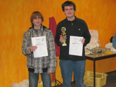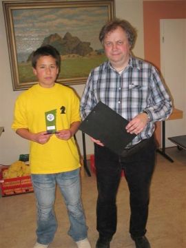In der WK 3 spielte Aurelio Kiewning mit. Wegen der schwachen Beteiligung in dieser Altersklasse wurde ein Rundenturnier gespielt. Nach anfänglichen Schwächen konnte Aurelio sich noch auf den 5. Platz vorkämpfen. Alles in Allem konnte man mit den einzigen Teilnehmern aus Fuldatal zufrieden sein. Allerdings mussten sich alle Fuldataler Teilnehmer im Laufe der Saison aus den Rennen um gute Plätze in der Gesamtwertung aller sechs Turniere verabschieden. Bild: Florian Müller (li.) und Aurelio Kiewning
