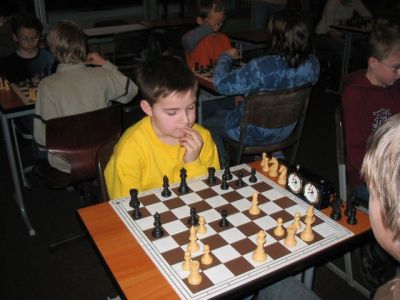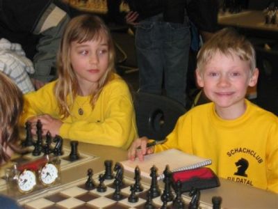 17.02.2007 Schulschach-Rallye 2006/07 in Ahnatal 43 Jugendliche, darunter 15 Grundschüler, waren nach Ahnatal gekommen, um ihr Können unter Beweis zu stellen. Erstaunlich diesmal die starke Beteiligung von Mädchen! Jannik Scherer, der sich noch Hoffnungen auf den Gesamtsieg machen konnte, musste wegen Krankheit zu Hause bleiben und scheidet damit aus dem Titelrennen aus. Pascal Brinkmann, als bester Fuldataler, konnte 4 Punkte aus 7 Partien verbuchen und schaffte es auf Platz 5! In der Gesamtwertung der Wertungsklasse G führen Jan Taege (Baunatal / 28 Punkte), Florian Schlosser (Ahnatal / 25), Pascal Heinemann (Lohfelden / 20) und David Bock (Ahnatal? / 14) vor Jannik Scherer mit 12 Punkten.