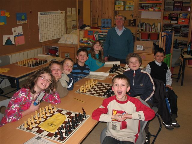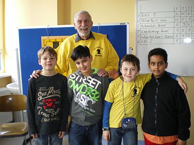 Nachdem im vergangenen Jahr Hans Walter Reuber die Tätigkeit an der Ludwig-Emil-Grimm-Schule in Ihringshausen aus gesundheitlichen Gründen einstellen musste, haben wir nach einem Nachfolger gesucht. Und gefunden! Horst Wagner, seit langem in der Jugendarbeit beim Schachclub tätig, wird die Arbeitsgemeinschaft leiten. Am 4. März waren alle Teilnehmer erstmals da und hatten ihre erste Unterrichtsstunde. Auf dem Bild zeigen sich die Schachschüler zusammen mit Horst Wagner. Man sieht deutlich: Die erste Stunde hat großen Spaß gemacht!