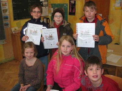 Die strahlenden Sieger (v.l.) Patricia, Samuel, Felicitas und Ronja Und auch zufrieden (v.l.) Jonas, Mika und Ralf