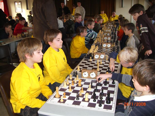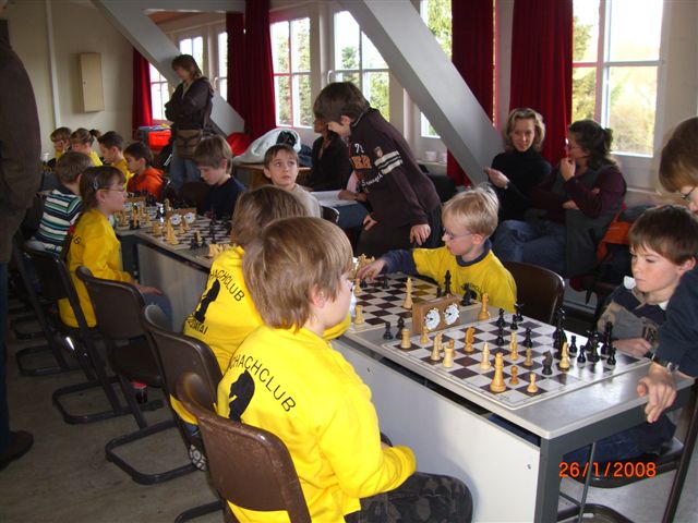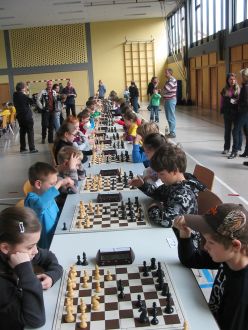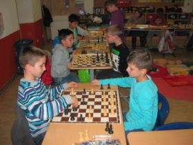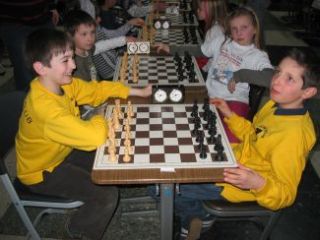 24.01.2009 Schulschach-Rallye 2. Runde in Fuldatal-Ihringshausen Am 24.01. richtete der Schachclub Fuldatal die 2. Runde in der Aula der Ludwig-Emil-Grimm-Schule in Ihringshausen aus. 56 Jugendliche aus ganz Nordhessen waren nach Fuldatal gekommen, um sich die Pokale in 4 verschiedene Altersgruppen zu erspielen. 7 Partien zu je 20 Minuten Bedenkzeit je Spieler mussten möglichst siegreich überstanden werden. Der Schachclub Fuldatal war in allen Altersklassen vertreten und stellte mit 10 Teilnehmern die größte Gruppe. Und um 15:30 Uhr standen dann die Platzierungen in den vier Wertungsklassen (WK) fest: Die Fuldataler schnitten überwiegend gut ab und konnten mit ihren Leistungen zufrieden sein. Hier die Ergebnisse der Fuldataler: WK 2 (Jahrgang 1992/1993) Kay Schultz – Platz 5; WK 3 (Jahrgang 1994/1995) Joschi Stabernack – Platz 5 und Pascal Brinkmann – Platz 9; WK 4 (Jahrgang 1996/1997) Jannik Scherer – Pokalsieger, Lukas Ammann – Platz 12 und Jakob Lücking Platz 22; WK G (Grundschüler bis Jahrgangsstufe 4) Mika Lange mit 4,0 Punkten auf Platz 5 und Timm Reinhardt mit ebenfalls 5 Punkten auf Platz 8; Sebastian Speer auf Platz 9 und Alexander Hochapfel aus der Schach AG der Grundschule Simmershausen auf Platz 12. Wichtig war für alle, Turniererfahrungen zu sammeln und zu sehen, ob sich das Lernen gelohnt hat. Und das konnte der Fuldataler Nachwuchs eindeutig bejahen. Die nächste Runde der Nordhessischen Schulschach Rallye findet statt am Samstag, dem 21.02.2009, an der Louis-Peter-Schule in Korbach. Ergebnistabellen und einige Fotos sind im Internet abrufbar unter www.Schulschach-Hessen.de (Rubrik Schulschach).Aber auch wir haben einiges festgehalten: