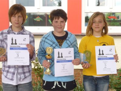 28.04.2012 Schulschachrallye in Bad Arolsen Insgesamt hatten sich 71 Teilnehmer in 3 Wertungsklassen eingefunden. Mit 14 Teilnehmern war die WK XL recht gut besetzt. Joschi Stabernack siegte souverän mit 7,0 Punkten aus 7 Partien! Allerdings liegt er in der Gesamtwertung mit 18 Punkten „nur“ auf Platz 2. In der WK L w holte sich Sarah Scherer mit 4,5 Punkten den ersten Platz und sicherte sich erneut 10 Punkte für die Gesamtwertung aller 6 Runden. Mit 38 Punkten führt sie in dieser Wertung vor Nina Quaß (TSV Wenigenhasungen), die jetzt 24 Punkte hat und Felicitas Maar (SC Fuldatal) mit 16 Punkten. Zwei Runden sind noch zu spielen. Mika Lange erspielte 4,0 Punkte und belegte damit Platz 6. In der WK S konnte Cara Milena Schmerer 3 von 7 möglichen Punkten holen und belegte damit Platz 10 in der Mädchenwertung.