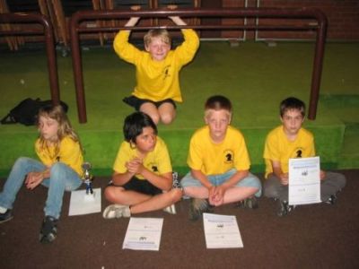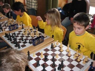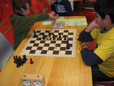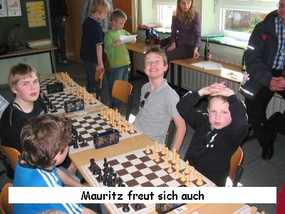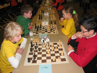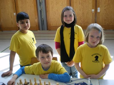 Hessischer Schulschach Mannschaftswettbewerb 2009/2010 Am 24.11. wurde die 1. Runde in Espenau gespielt. Angetreten waren 2 Mannschaften der Grundschule Espenau und je eine Mannschaft von der Grundschule Simmershausen und von der Montessori-Schule Kassel. Gegen letztere gab es ein 2 : 2, gegen Espenau 2 ein 3 : 1 und gegen Espenau 1 eine 1,5 : 2, 5 Niederlage. Damit hatte Espenau 1 8,5 Brettpunkte, die Montessori-Schule 7,5 Brettpunkte und wir 6,5 Brettpunkte und so sind wir mit einem Punkt zu wenig auf den 3. Platz gekommen. Leider ist die Mannschaft mit Alexander Hochapfel, Mika Lange (2 Punkte), Timm Reinhardt (2,5) und Andre Jäckel (2) nun bereits ausgeschieden.