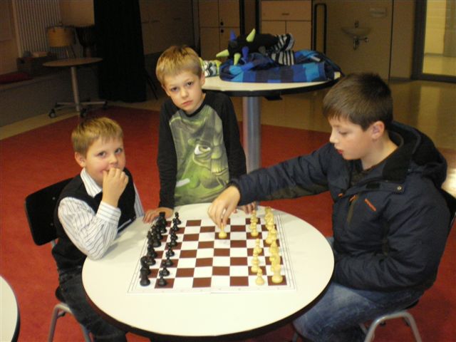 Links: Diese Partie gewinnt Mika +++ Mitte: Cedric zeigt seinem Gegner, was droht +++ Rechts: Sevilen, unser Jüngster, holte heute 2 Punkte. Einen davon gegen Lisa Marie