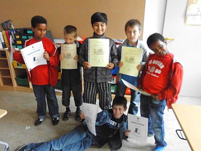 17.05.2013 Nachwuchsturnier in der Fridtjof-Nansen-Schule Kassel Mit einer Mannschaft der Ludwig-Emil-Grimm-Schule fuhren wir zu einem Turnier für Schüler der Klassen 1 – 3. Die Kinder hatten 15 Minuten Bedenkzeit zur Verfügung. 9 Grundschul-Mannschaften hatten sich zur Teilnahme gemeldet. Von uns nahmen Abel und Paulos Haile sowie Kai NN erstmals an einem Turnier überhaupt teil. Insgesamt konnte unsere Mannschaft mit Jonas Abedi, Ralf Alexander Aldabergenov, Abel und Paulos Haile sowie Kai NN (Grundschule Simmershausen) zufrieden sein: 2 Spiele gewonnen, 1 Spiel Unentschieden und 2 Spiele verloren. Das bedeutet am Ende Platz 6! Am erfolgreichsten an Brett 2 von allen Mannschaften war Ralf Alexander Aldabergenov : Er gewann alle 5 Partien! Und wurde für diese tolle Leistung mit einer besonderen Urkunde ausgezeichnet.