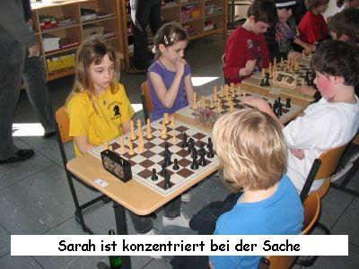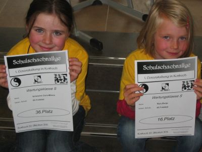 29.09.2012: Schulschach Rallye 2012/2013 Am 29.09. wurde die 1. Etappe in der Söhre-Schule in Lohfelden ausgetragen. Insgesamt 56 Schüler aus Nordhessen hatten sich eingefunden. Zu spielen waren in 3 Wertungsklassen (WK) 7 Runden mit 20 Minuten Bedenkzeit für die Spieler. In der WK XL konnten sich Samuel Maar und Mika Lange über 3 Punkte freuen, waren aber nicht ganz zufrieden. In der WK L war Sarah Scherer mit 4,5 Punkten ganz weit vorn: 4. Platz! Felicitas und Patricia Maar kamen jeweils auf 3,5 Punkte. In der Mädchenwertung führen diese Drei! In der WK S (Grundschüler) holte sich Ralf A. Aldabergenov mit 3,5 Punkten noch einen guten 11. Platz. Und unser jüngster Teilnehmer Jonas Abedi schaffte immerhin noch 2,5 Punkte
