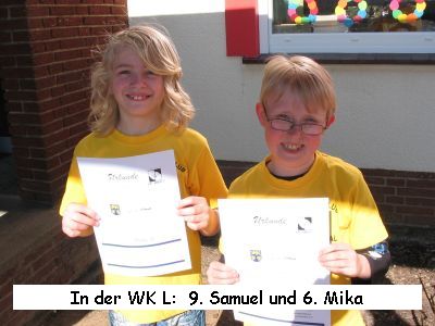 Links: Die zufriedenen Teilnehmer zusammen mit ihrem Betreuer Heinz-Dieter Schmidt; rechts: Unsere beiden Besten an diesem Tag: Jannik Scherer (links) 2. in der WK 4 und Timm Reinhardt 7. in der WK G.