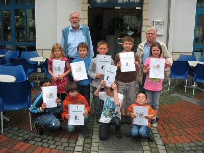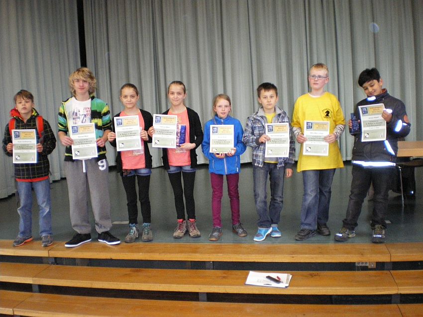 Da kommt Freude auf! Max, David, Melina und AG-Leiter Horst Wagner(hintere Reihe von links) sowie Louis, Paul, Nils und Lukas (sitzend von links) sind sehr zufrieden.
