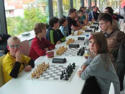 28.09.2013 Schulschachrallye 2013/2014: Am 28.09. begann die neue Serie mit einem Turnier in der Fasanenhofschule in Kassel. 56 Jugendliche kämpften in 3 Wertungsgruppen um die Plätze. Fuldatal stellte mit 9 Teilnehmern wieder ein großes Kontingent. Und die Spieler waren durchaus erfolgreich. In der stärksten Gruppe XL konnte Samuel Maar ungeschlagen souverän Platz 1 belegen! Mika Lange wurde Sechster. In der Gruppe L platzierte sich im Mittelfeld Felicitas Maar (13.), Ronja Ruis (16.) und Patricia Maar (19.). Felicitas siegte in der Mädchenwertung. In der Grundschulgruppe S kam Jonas Abedi mit 5 von 7 möglichen Punkten auf Platz 4. Und Ralf Aldabergenov mit 4 Punkten belegte Platz 13.