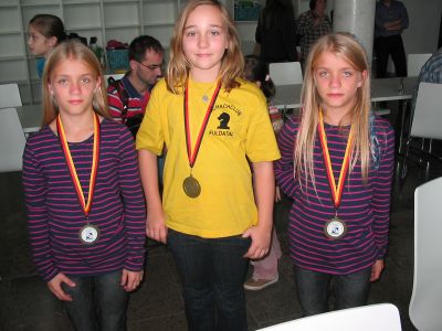 20.04.2013 Schulschachrallye in Bad Arolsen Geschwister Maar erfolgreich! Bei der 4. Etappe in Bad Arolsen kämpften insgesamt 68 Jugendliche in drei Wertungsgruppen um die Plätze. Der Schachclub Fuldatal war in allen Wertungsgruppen vertreten. In der Gruppe L konnte die Favoritin für den Gesamtsieg Sarah Scherer nicht antreten. Dafür spielten aber Felicitas und Patricia Maar hervorragend, holten sich ganz wichtige Punkte und führen jetzt die Mädchenwertung an. Felicitas kam mit 4,0 Punkten auf Platz 3! Und Patricia folgte dicht auf mit 3,5 Punkten. Saleem Javed (auch 4,0 Punkte) verfehlte auf Grund der schlechteren Feinwertung den Platz auf dem Siegerpodest. Wie üblich war die Grundschulgruppe (=S) mit 42 Teilnehmern wieder die zahlenmäßig größte Gruppe. Hier konnte sich Ronja Ruis mit 4,0 Punkten bestens positionieren und erreichte Platz 11. Cara-Milena Schmerer konnte sich mit 3,5 Punkten auch noch in der ersten Hälfte behaupten, während es aber für Jonas Abedi, Ralf-Alexander Aldabergenov und Kevin M. Göbel mit jeweils 3,0 Punkten nicht mehr für die erste Tabellenhälfte reichte.