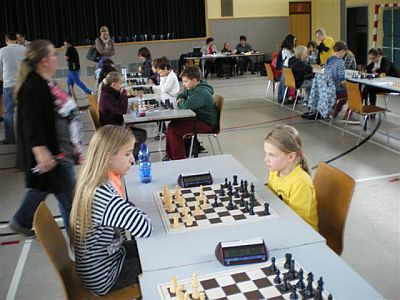 Pünktlich zum angekündigten Start um 10.30 Uhr saßen sich 32 Achter-Mannschaften aus 24 Schulen an 128 Schachbrettern erwartungsvoll gegenüber. Wir Fuldataler waren zusammen mit 13 anderen Teams von 12 Schulen in der Wertungsgruppe „Grundschulen“ angetreten. 7 Runden mit je 15 Minuten Bedenkzeit mussten gespielt werden. Die Mannschaft der Grundschule Simmershausen kam nach Brettpunkten auf den 8. Platz, während die Mannschaft der Ludwig-Emil-Grimm-Schule mit 12,5 Brettpunkten auf Platz 14 landete, mit einem halben Brettpunkt weniger denkbar knapp hinter der Hupfeldschule Kassel. Am erfolgreichsten waren Martin Bock mit 5 Punkten sowie Timm Reinhardt und Finn Wiesner mit je 4,5 Punkten und Alexander Hochapfel mit 4 Punkten in der Mannschaft der Grundschule Simmershausen. Für die Mannschaft der Ludwig-Emil-Grimm-Schule waren Moritz Porzucek mit 4 Punkten und Marcel Schmidt mit 2,5 Punkten am erfolgreichsten.