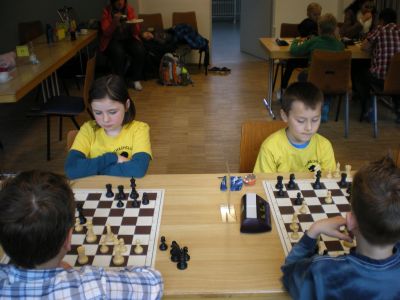 11.02.2012 Schulschachrallye in Spangenberg Die 3. Runde wurde in der Burgsitzschule Spangenberg gespielt. In den drei Wertungsklassen hatten sich 66 Schüler angemeldet. Sie mittlere Wertungsgruppe L war mit 17 Teilnehmern recht gut besetzt. 7 Runden mit je 20 Minuten Bedenkzeit je Spieler mussten gespielt werden. Und lange lagen Sarah Scherer und Samuel Maar ganz vorn. Am Ende aber hieß es mit 4,5 Punkten Platz 4 und Platz 5 für die beiden. Für Sarah war das aber ganz wichtig, denn in der „Mädchenwertung“ war sie die Beste und sammelte 10 Punkte für die Gesamtwertung! Dort führt sie nun mit 28 Punkten vor Nina Quaß (Wenigenhasungen) mit 16 Punkten und Sema Isilak (Caissa Kassel) mit 14 Punkten. Auch Martin Bock mit 4, 0 Punkten und Platz 7 konnte zufrieden sein. Die Zwillinge Felicitas und Patricia Maar brachten es auf je 3,0 Punkte. Die Wertungsklasse S (Grundschulen) war mit 32 Teilnehmern zahlenmäßig am stärksten besetzt. Cara-Milena Schmerer holte 3,0 Punkte und Jonas Abedi 2,0.