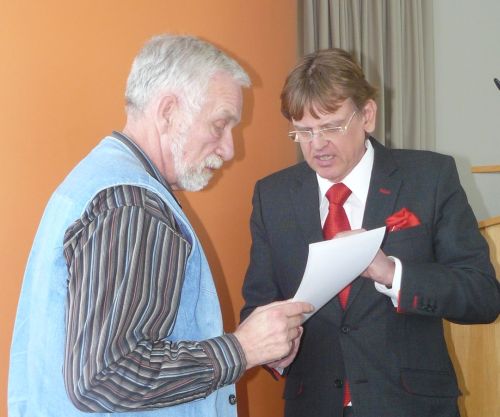 Heinz-Dieter Schmidt, der bereits zum 40. Vereinsjubiläums in 2001 die Verbandsehrennadel in Gold erhalten hatte, war sichtlich berührt, als ihm das Ehrenzeichen in Gold samt Urkunde überreicht und ihm dazu gratuliert wurde. Seine ersten Worte, die er an die Delegierten richtete, lauteten dann auch: „Ich habe nichts gewusst“, und seine ebenfalls angereisten Vereinskollegen fragte er: „Wusste meine Frau davon ?“. Dies aber wurde wahrheitsgemäß verneint.