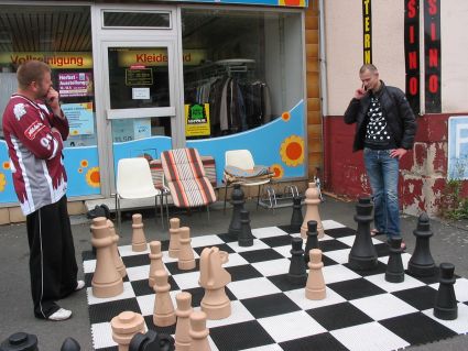 Wir haben uns über das rege Interesse an unserem Schachspiel (Großfiguren) sehr gefreut. Den ganzen Tag über wurde gespielt. Jung und alt waren eifrig dabei. Noch mehr würden wir uns freuen, wenn nun auch diese Spieler mal zu uns kämen. Wir spielen montags von 16.30 bis 18 Uhr in Simmershausen im Haus der Vereine (neben der Grundschule). Da üben die Kinder und Jugendlichen zwischen 7 und 14 Jahren. Und dienstags treffen wir uns ab 19 Uhr im Haus Schönewald in Simmershausen.